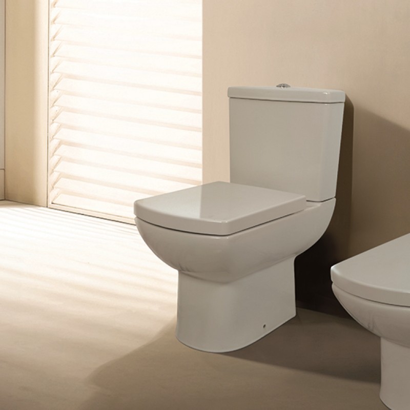 Profile short projection C/C WC (open back) with Geberit flush fittings and soft close seat cover