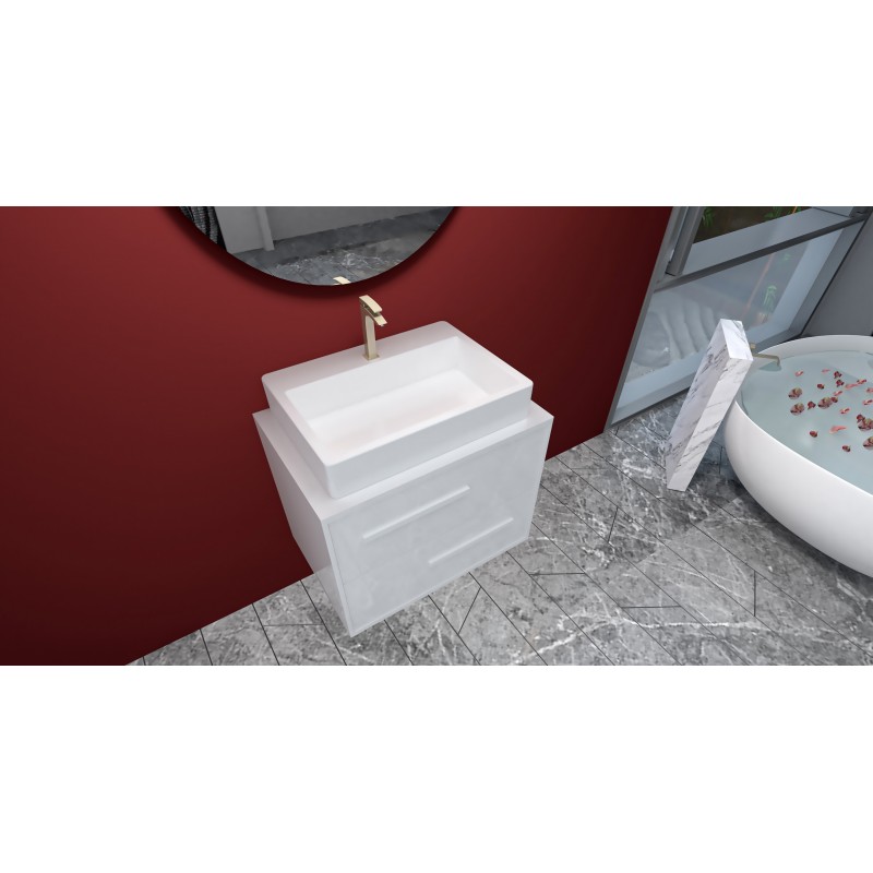 Legacy wall mounted 2 drawer vanity unit (Gloss white) with white glass top & ceramic basin
