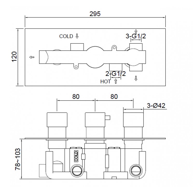 STV4 - Square three handle thermostatic shower valve 3-outlet