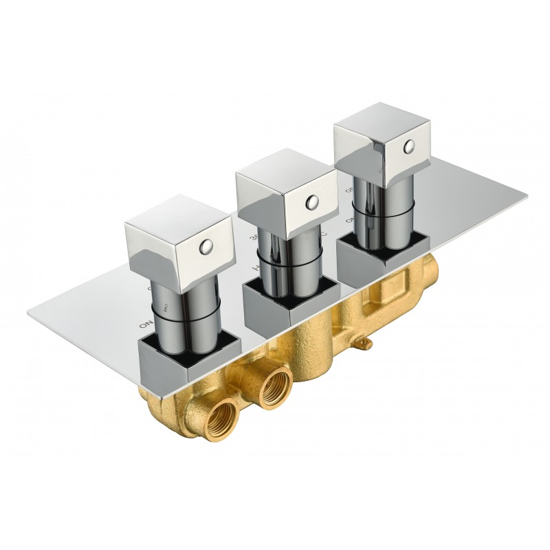 Square three handle thermostatic shower valve (Horizontal), 2-outlet