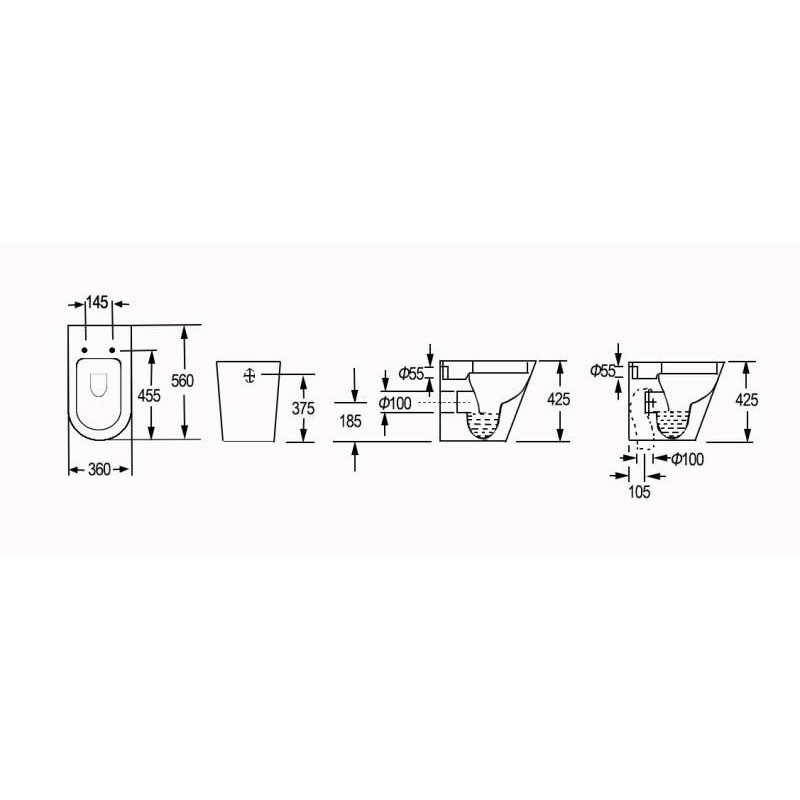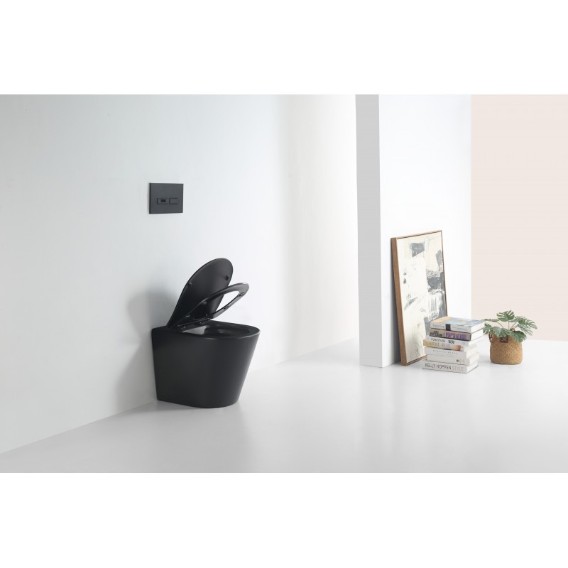 Onyx rimless back to wall WC pan with soft close seat - Matt Black