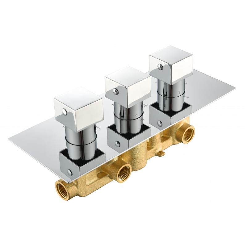 Square three handle thermostatic shower valve (Vertical), 3-outlet